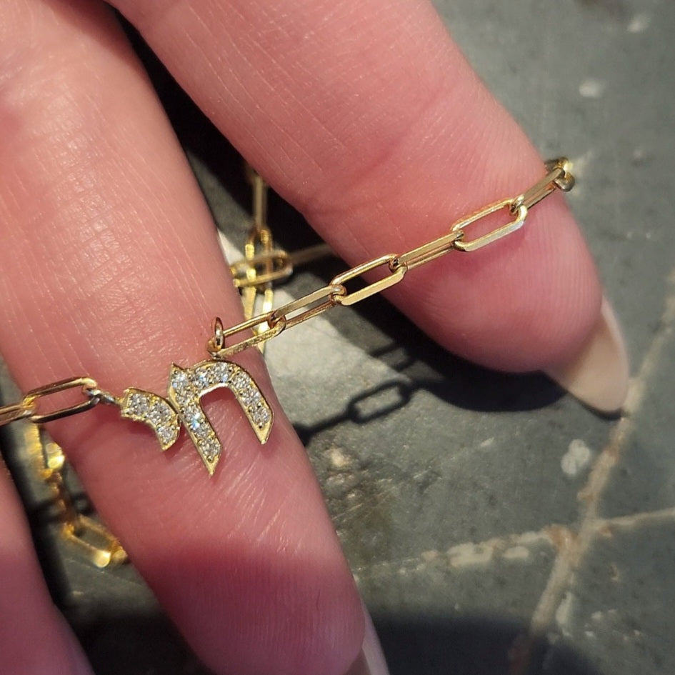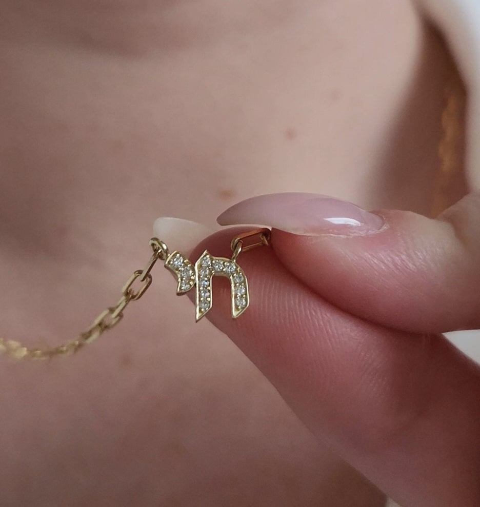 8mm Hebrew Chai pendant with diamonds