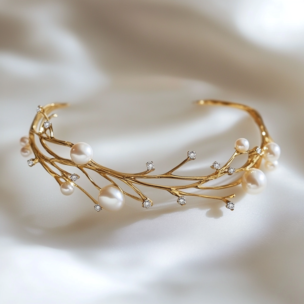 Gold crown hand crafted, 18k recycled gold with conflict free diamonds and fresh water pearls