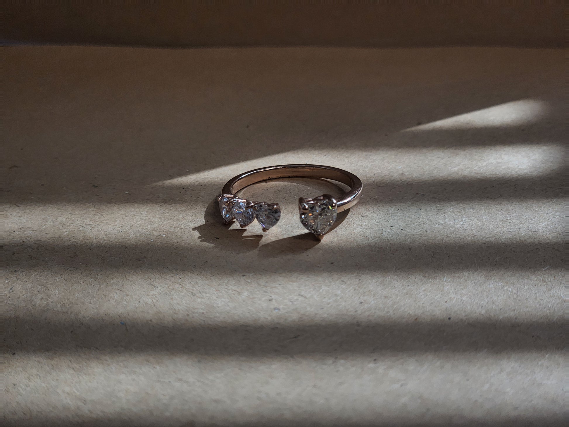 Cracted in 18k gold, with 0.85ct natural diamonds heart shape